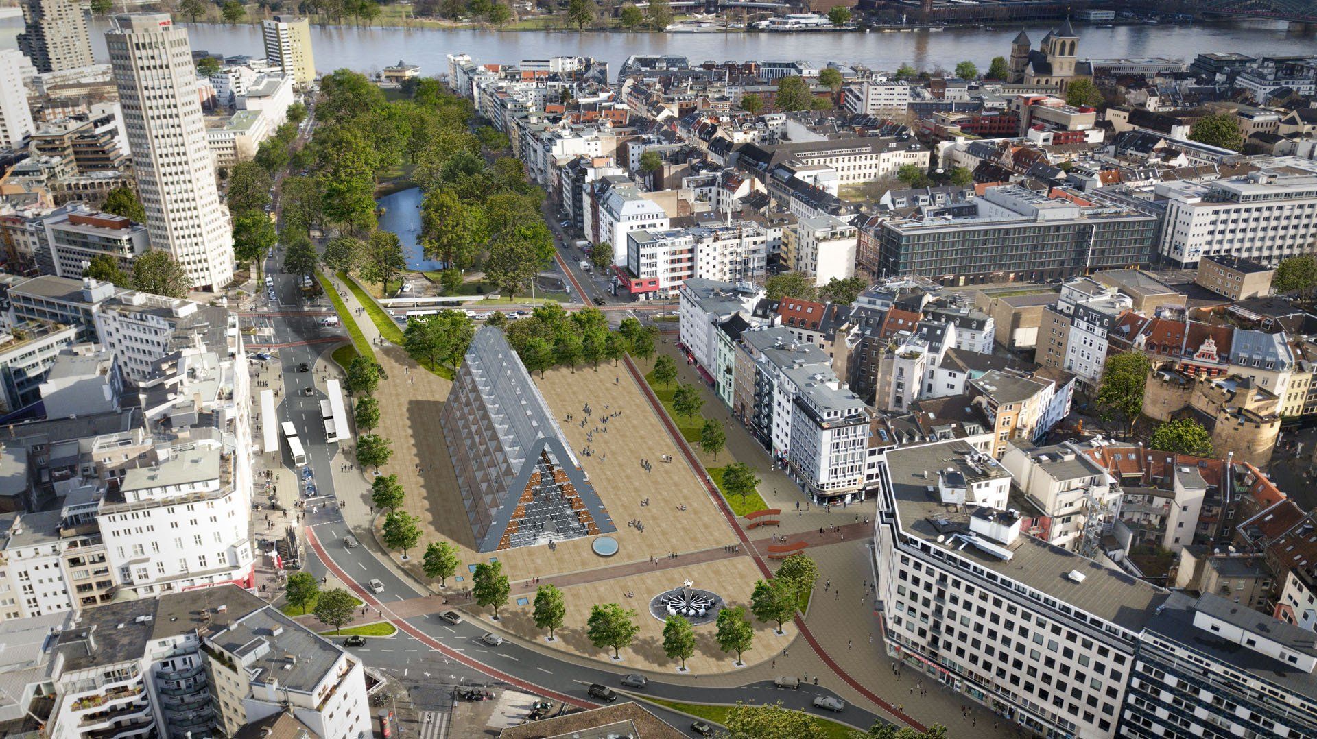 - Der Masterplan des Büros Speer sieht vor, dass der Ebertplatz auf die Höhe der angrenzenden Straßen angehoben und damit ein gut begeh- und benutzbarer Stadtraum entsteht
