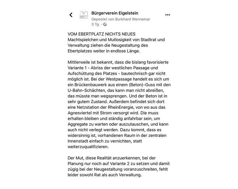 ..."das Ziel sollte in jedem Fall sein, den Raum des Ebertplatzes wieder als konventionellen, gut begeh-und nutzbaren Stadtraum zurückzugewinnen. ..."